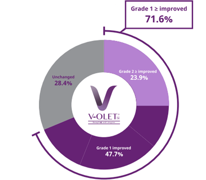 Ref.> 1.ブイオレット_食品医薬品安全処許可事項. Violet_Ministry of Food and Drug Safety approval. 2. Ascher B, et al. Expert Rev Clin Pharmacol. 2016;9(9):1131-1143.
