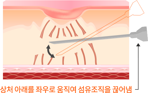 特殊な針を使ってコラーゲン繊維組織を肌の表面と平行に切ると、 肌の再生が促進され、傷跡の治療効果が期待できます。