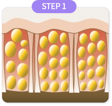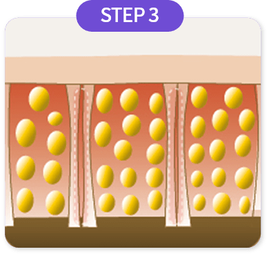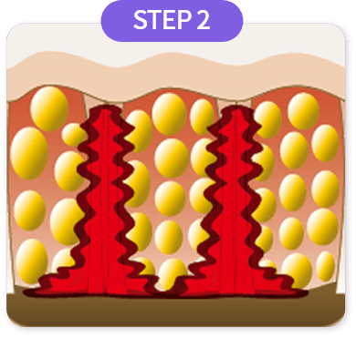 少ない痛みで肌層、脂肪層、筋肉層